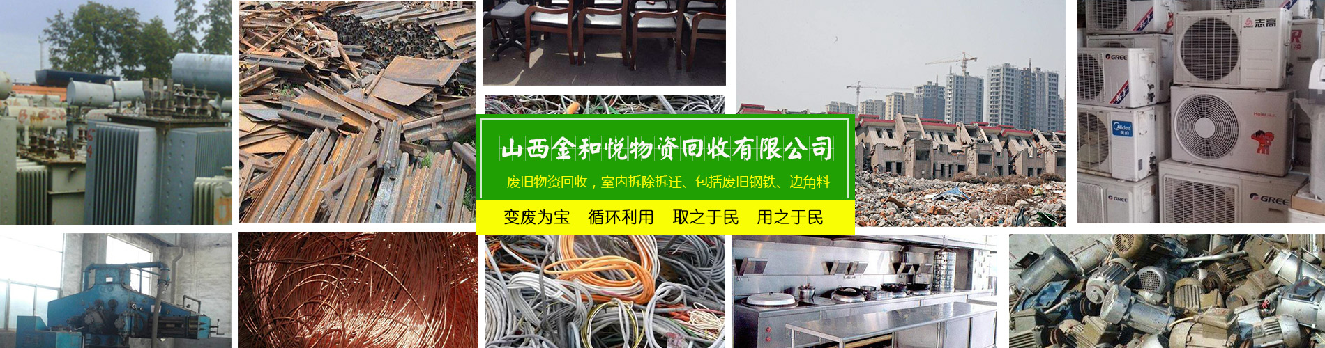 山西金和悅物資回收有限公司是一家從事廢舊物資回收,整廠設備打包回收的公司。主要可回收社會各行各業的廢舊物資,包括廢鋼廢鐵/廢銅廢鋁/稀有金屬/廢不銹鋼/廢舊機械設備/電線電纜/電池電瓶回收以及廢舊廠房整體設備打包回收。免費上門估價,現場付款,可帶工人上門,清理庫房。我公司立足于環(huán)保,利用閑置的資源,變廢為寶,循環(huán)利用,取之于民,用之于民,讓有效的資源得到合理的利用,充分體現它的價值。公司堅持“以質量求生存,以信譽求發(fā)展”的基本原則,為山西及周邊地區的企業、單位和個人提供安全、快捷的服務。歡迎各界有廢料或需要拆除的人士來電洽談業務!